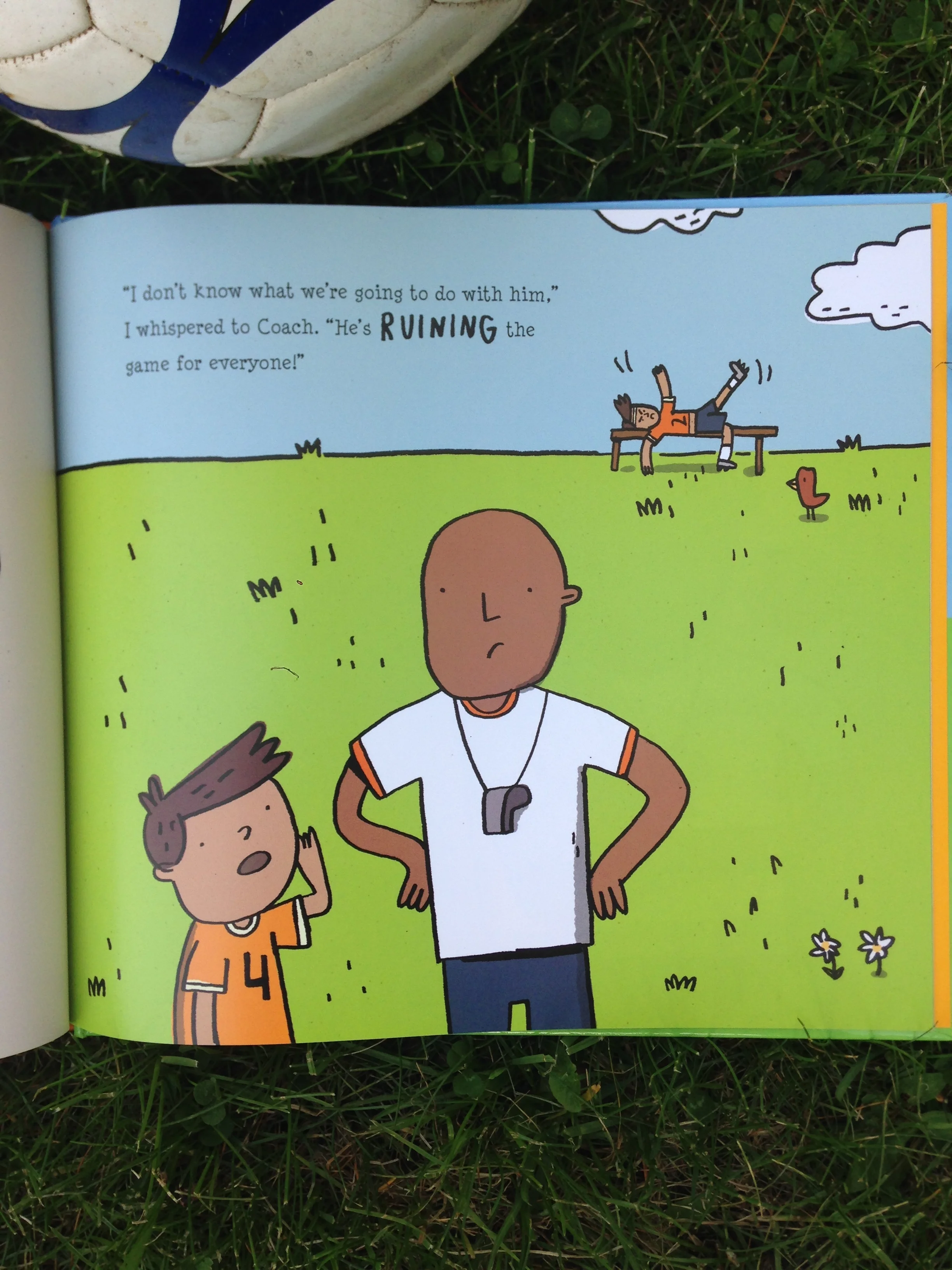 With the Spring/Summer sports just getting started The Day My Dad Joined My Soccer Team by Maureen Fergus and Mike Lowry, published by Kids Can Press is aa excellent story about what it means to be a good sport. We have all seen the child who perhaps doesn’t want to play his or her assigned position, would rather play with the grass than kick the ball, or gets really intensely angry when his or her team is losing. Told in the voice of a young boy giving pointers and instruction to his Dad in a kind and nurturing way. What a great book to help your little All Star remember how to be a great player. Also not a bad reminder to all those parents out there who may get a little too involved in their child’s sports. Although it’s a soccer story, the lessons really translate to any sport. Maureen Fergus is so fantastic at taking an everyday life lesson and putting a clever spin on it, in this case making the child the teacher and the parent the person who needs to adjust their behaviour. Your little sports fan will find this story hilarious. I loved explaining the term "hairy fit" to The Bear. With a comic book feel, Mike Lowry’s art in this story is bright, colourful, and has some fun little details to add to the humour of the story, check out Dad in the background of some of the pictures.